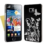 Butterfly Nuovo Qualita Nero E Argento Farfalla Floreale Modello Custodia Per Samsung Galaxy S2 i9100 Con Libero Schermo Pellicola Protezione Da Yousave